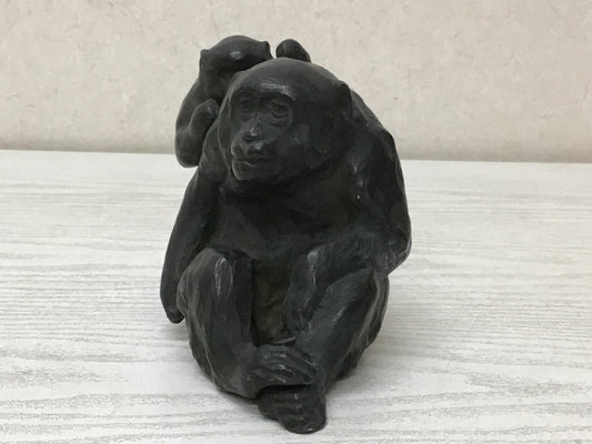 Y2695 OKIMONO Antimony Parent Child Monkey figure figurine Japan antique decor