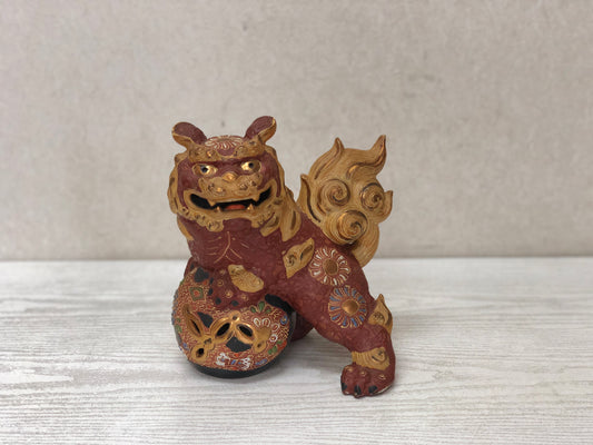 Y3123 OKIMONO Kutani-ware Lion with ball figurine figure Japan antique decor