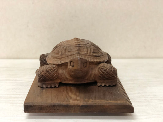 Y2910 OKIMONO wood carving turtle figurine stand Japanese antique statue figure