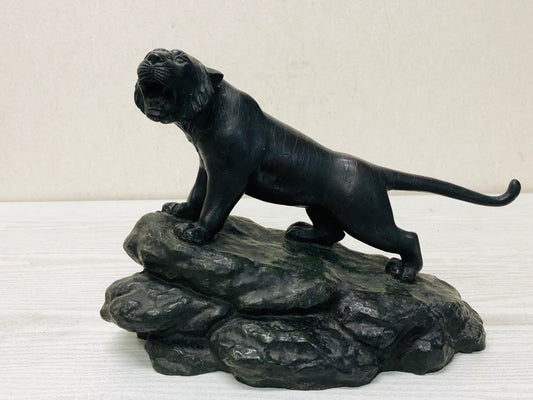 Y3282 OKIMONO Copper Tiger Rock figure figurine Japanese antique interior decor