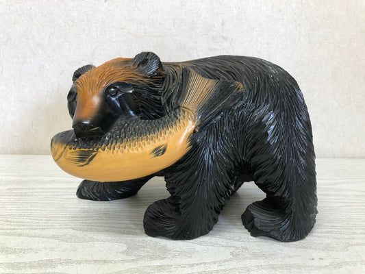 Y3408 OKIMONO Wood carving Bear figure figurine signed Japan antique interior