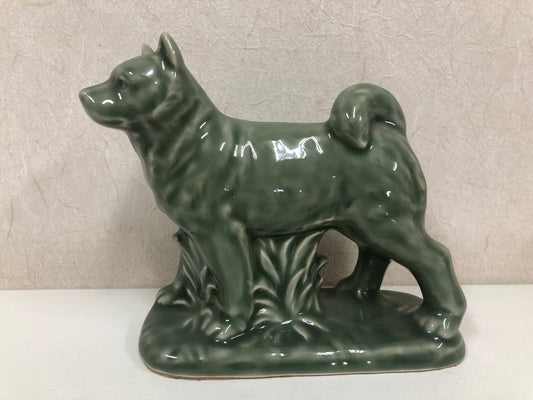 Y4090 OKIMONO Celadon Dog figure ceramic figurine Japan antique vintage decor