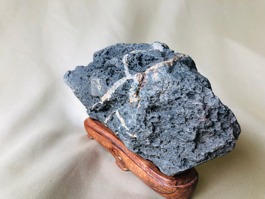 Y4270 OKIMONO Suiseki stone wood stand Japan antique interior home decor