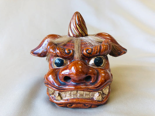 Y4287 OKIMONO Oohi-ware Lion figure signed box Japan antique vintage decor
