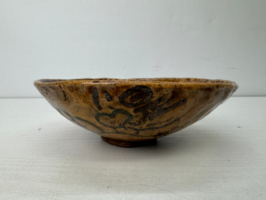 Y9790 CHAWAN Mino-ware flat bowl Seto Karatsu Japan antique tea ceremony pottery
