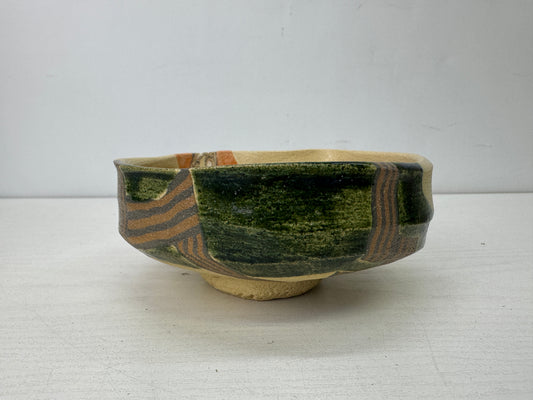 Y9905 CHAWAN Oribe-ware kneaded bowl signed box Japan antique tea ceremony cup