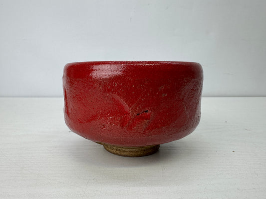 Y9908 CHAWAN Seto-ware bright red bowl signed box Japan antique tea ceremony cup