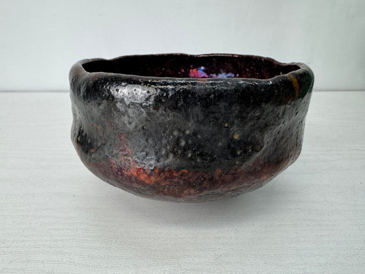 Y10055 CHAWAN Raku-ware kintsugi bowl signed Japan antique tea ceremony pottery
