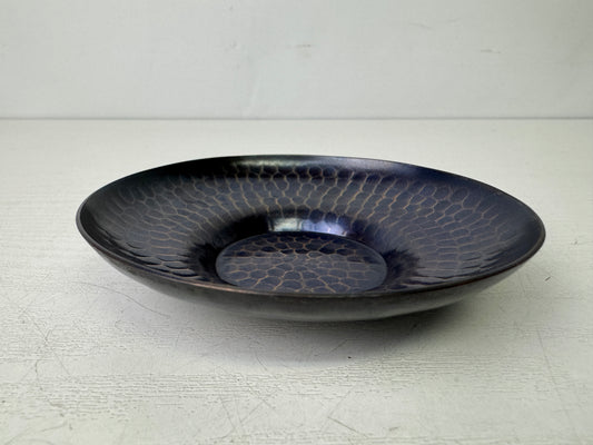 Y9848 DISH copper hammered Chataku Coaster signed box Japan antique Sencha tea