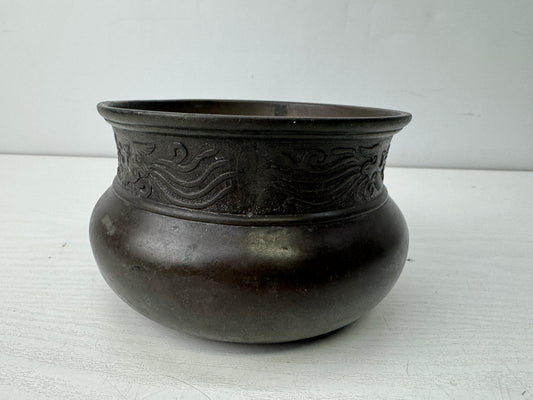 Y9846 KENSUI Copper water pot jar bowl signed box Japan antique tea ceremony