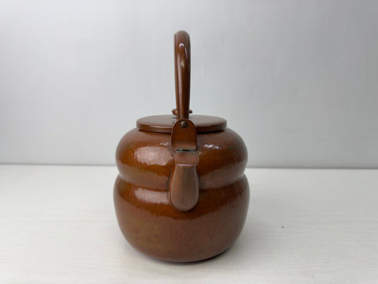 Y9212 KETTLE Copper tea pot teapot hammered signed Japan antique kitchen