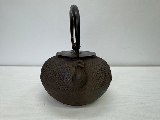 Y9939 TETSUBIN Iron kettle Arare pattern copper lid Japan antique teapot tea