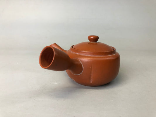 Y7423 KYUSU pot signed unglazed reddish brown pottery China antique Tea Ceremony