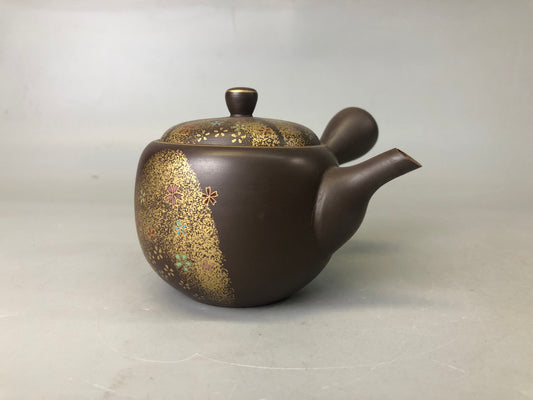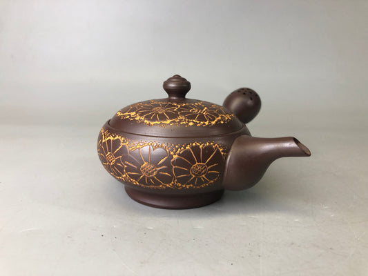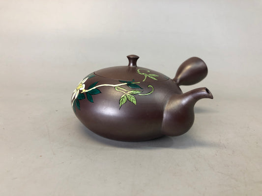 Y7454 KYUSU Banko-ware teapot signed flower Japan antique Tea Ceremony pottery