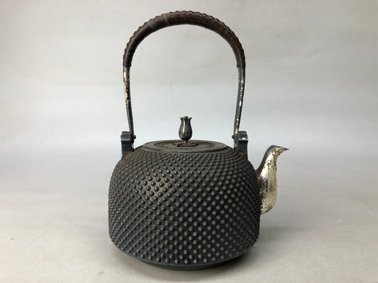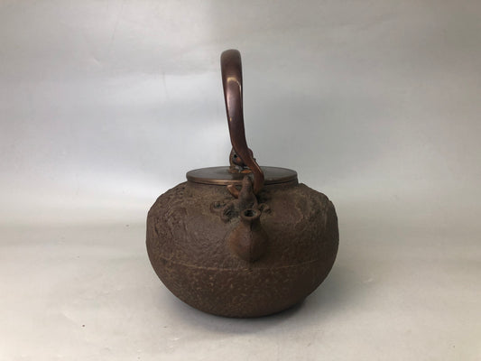 Y7429 TETSUBIN Iron kettle Kibundo signed copper handle signed Japan antique pot