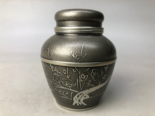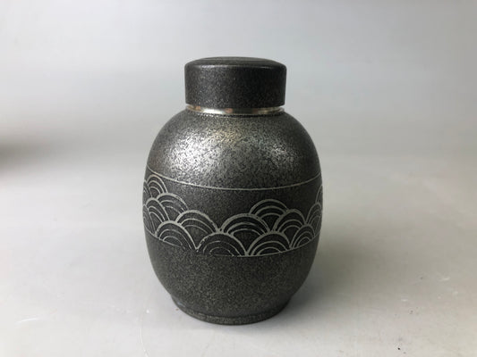Y7483 TEA CADDY tin urn signed box Japan Tea Ceremony antique containter case