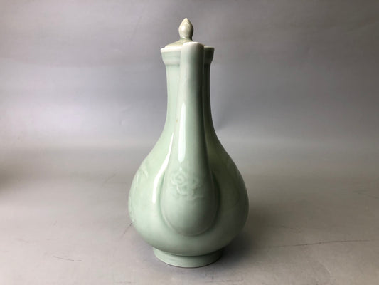 Y7724 TEA POT Celadon water jug pot cloud crane Japan antique tea ceremony