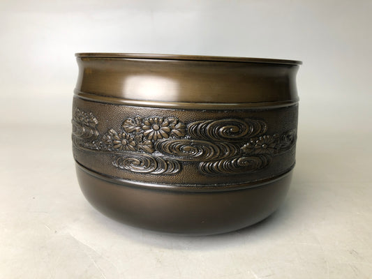Y7757 KENSUI copper water pot jar chrysanthemum Japan antique tea ceremony