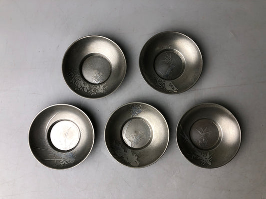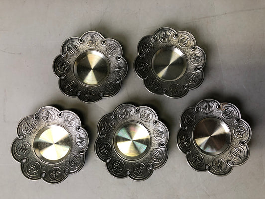 Y7779 DISH tin Chataku coaster set of 5 signed box Japan antique tableware