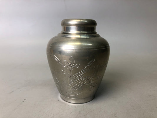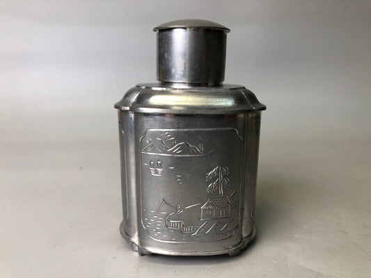 Y7793 TEA CADDY Tin container signed engraved China Tea Ceremony antique jar