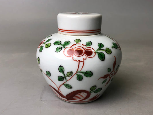 Y7813 TEA CADDY Kyo-ware container signed red picture Japan Tea Ceremony antique