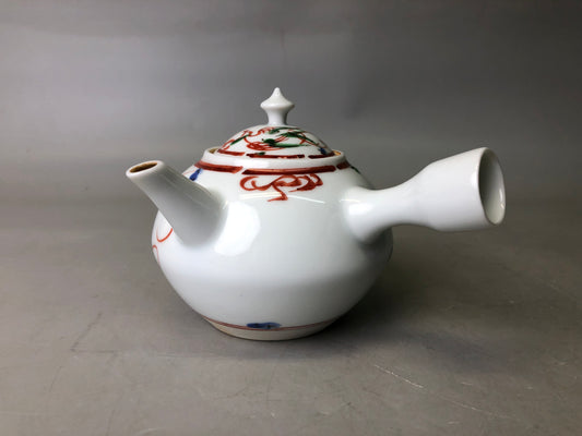 Y7817 KYUSU Kyo-ware teapot red picture signed Sencha Japan antique tea ceremony