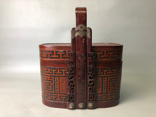 Y7846 Bamboo Woven Basket Chawan tea ceremony utensils set handle China antique