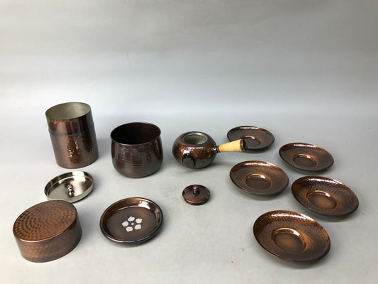 Y7824 DISH Copper Chataku coaster set of 5 Japan antique Sencha tableware plate