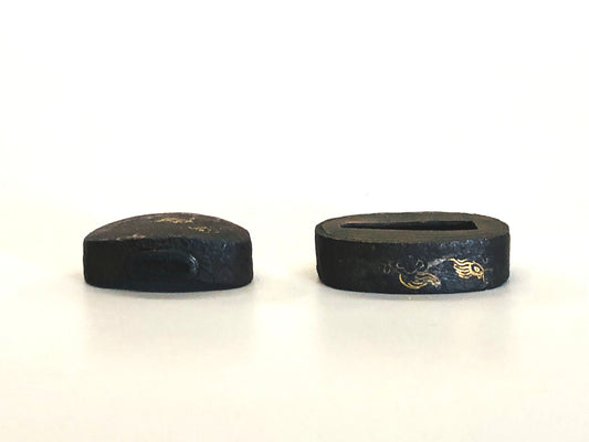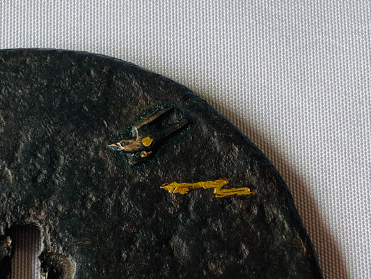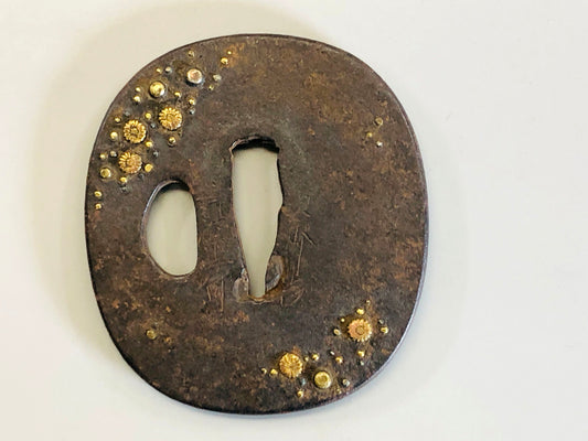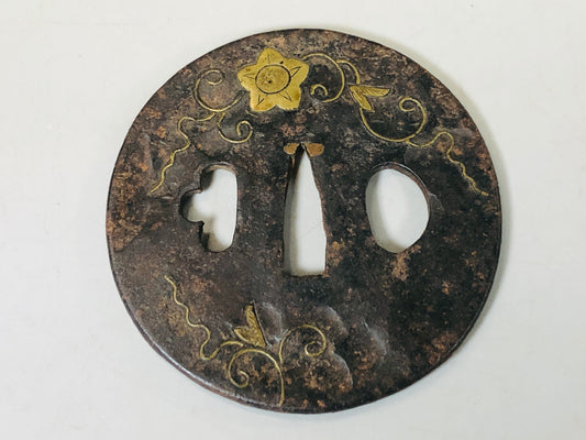 Y4834 TSUBA Iron sword guard gold inlay Japanese samurai katana koshirae edo