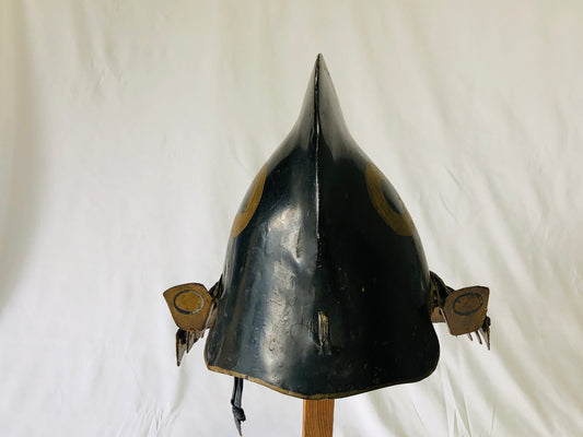 Y5297 JINGASA samurai helmet family crest busho black lacquer Japan antique