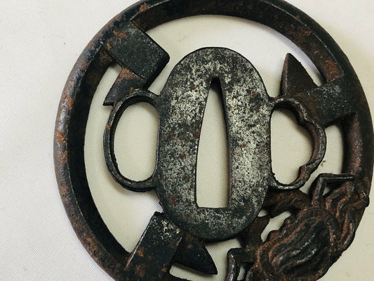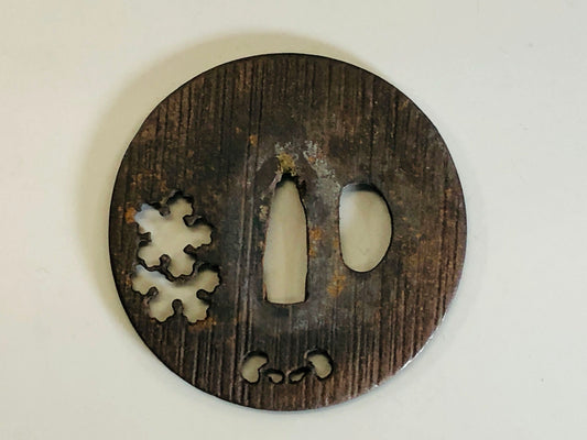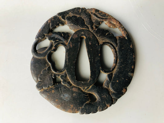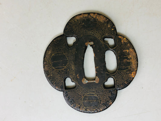 Y5101 TSUBA Iron sword guard Japan samurai katana antique koshirae edo vintage