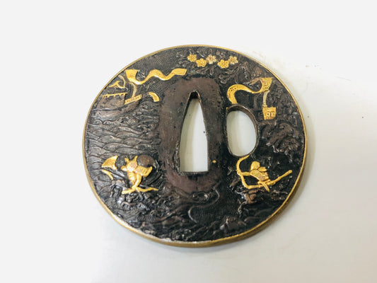 Y5573 TSUBA sword guard Inlay bow ship Japan samurai katana koshirae edo antique