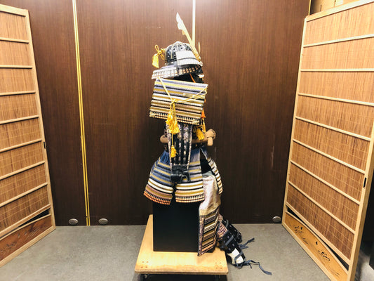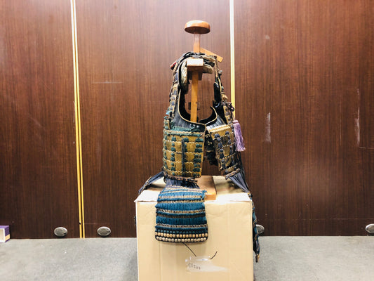 Y7036 YOROI Samurai armor helmet set navy blue white brown thread Japan antique