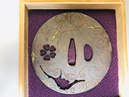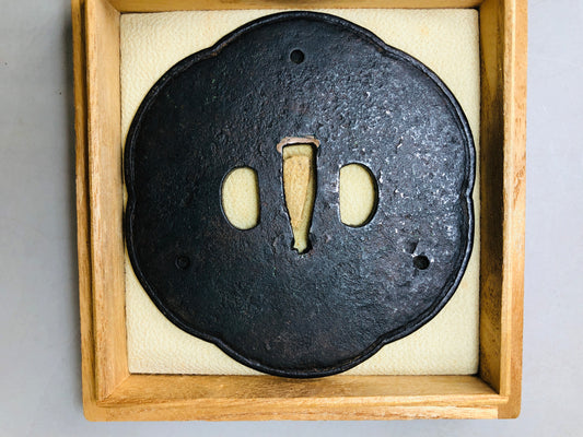 Y5995 TSUBA Large sword guard Inlay box Japan samurai katana koshirae edo