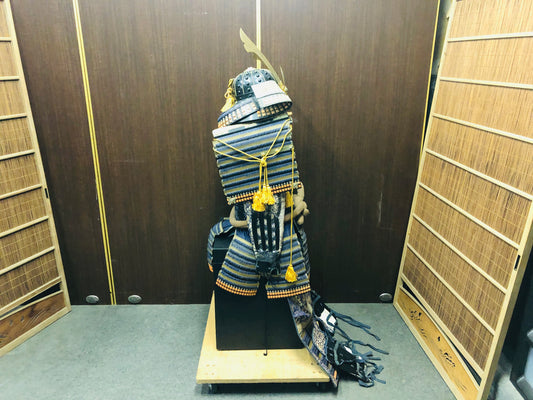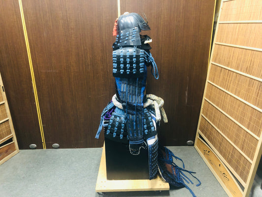 Y7038 YOROI Samurai armor helmet set navy blue thread Japan antique busho bushi