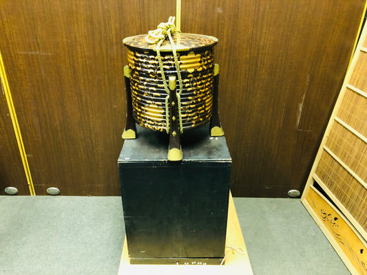 Y7039 HOKAI Arabesque Makie ritual food container with legs box Japan antique