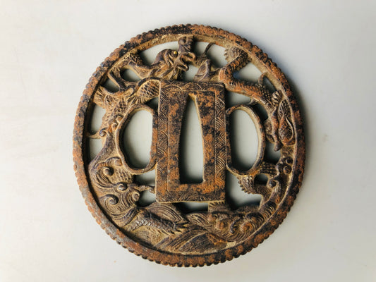 Y7107 TSUBA Iron sword guard Dragon Japan samurai katana antique koshirae edo