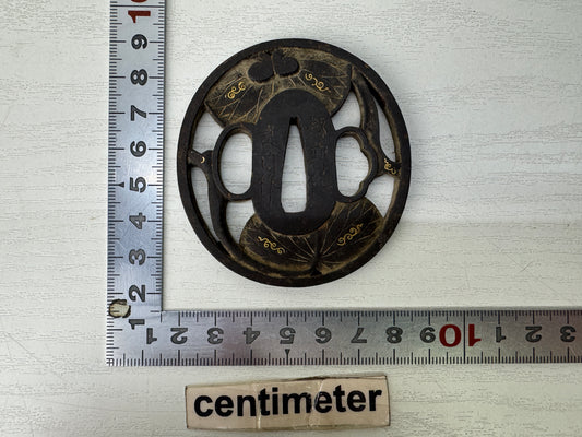 Y9577 TSUBA Iron sword guard Leaves Japan samurai katana antique koshirae edo
