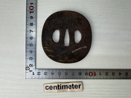 Y10289 TSUBA Iron sword guard gold silver inlay Japan samurai katana antique edo