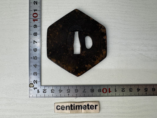 Y10197 TSUBA Iron sword guard hexagon Japan samurai katana antique koshirae edo