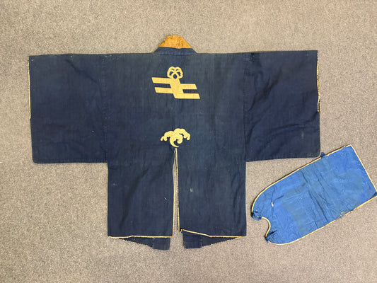 Y10246 HAPPI COAT Apron family crest embroidery Edo period Japan antique samurai