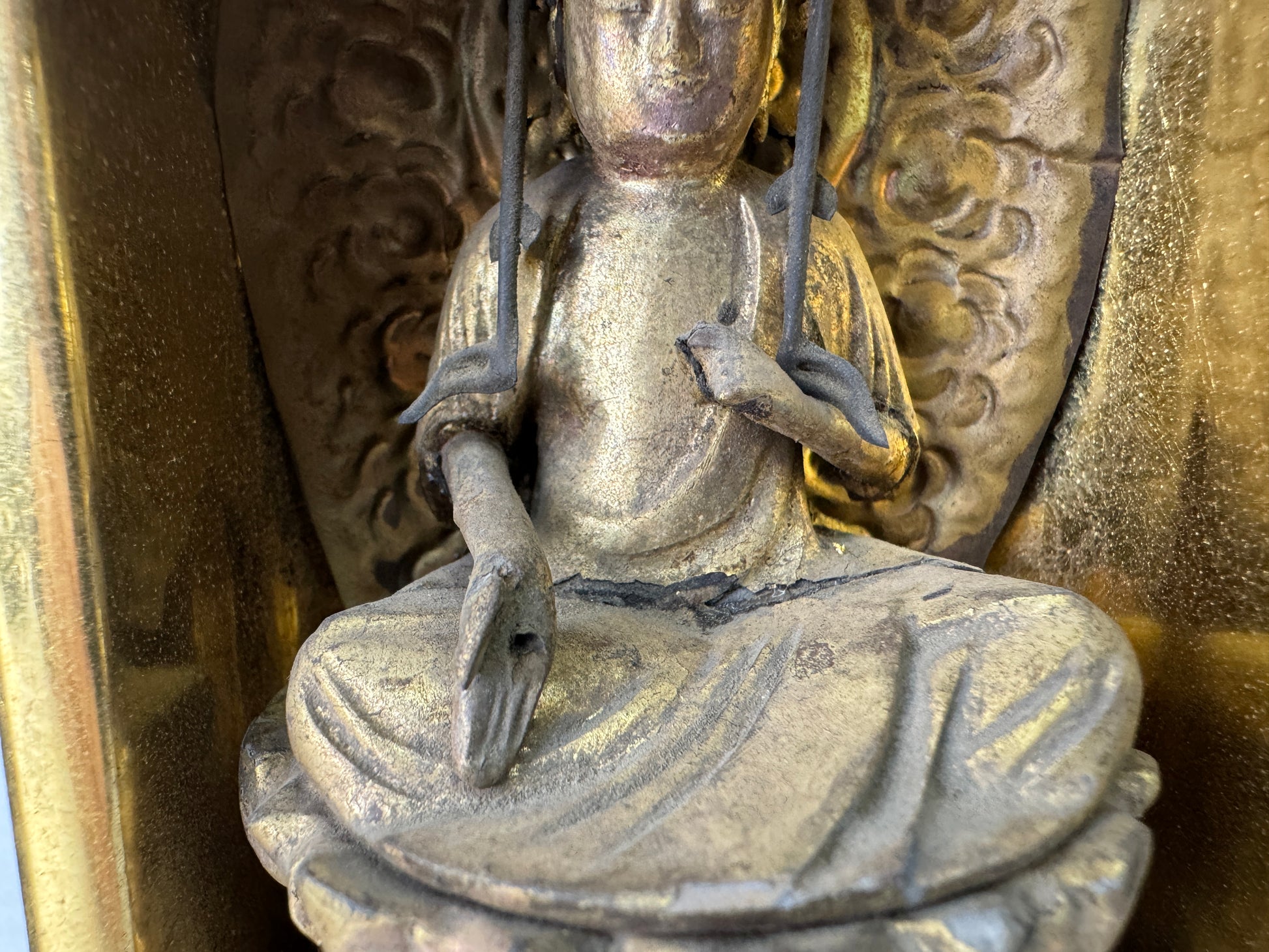 Y10022 STATUE wood carving Buddhist figure shrine cracked Japan antique Buddhism