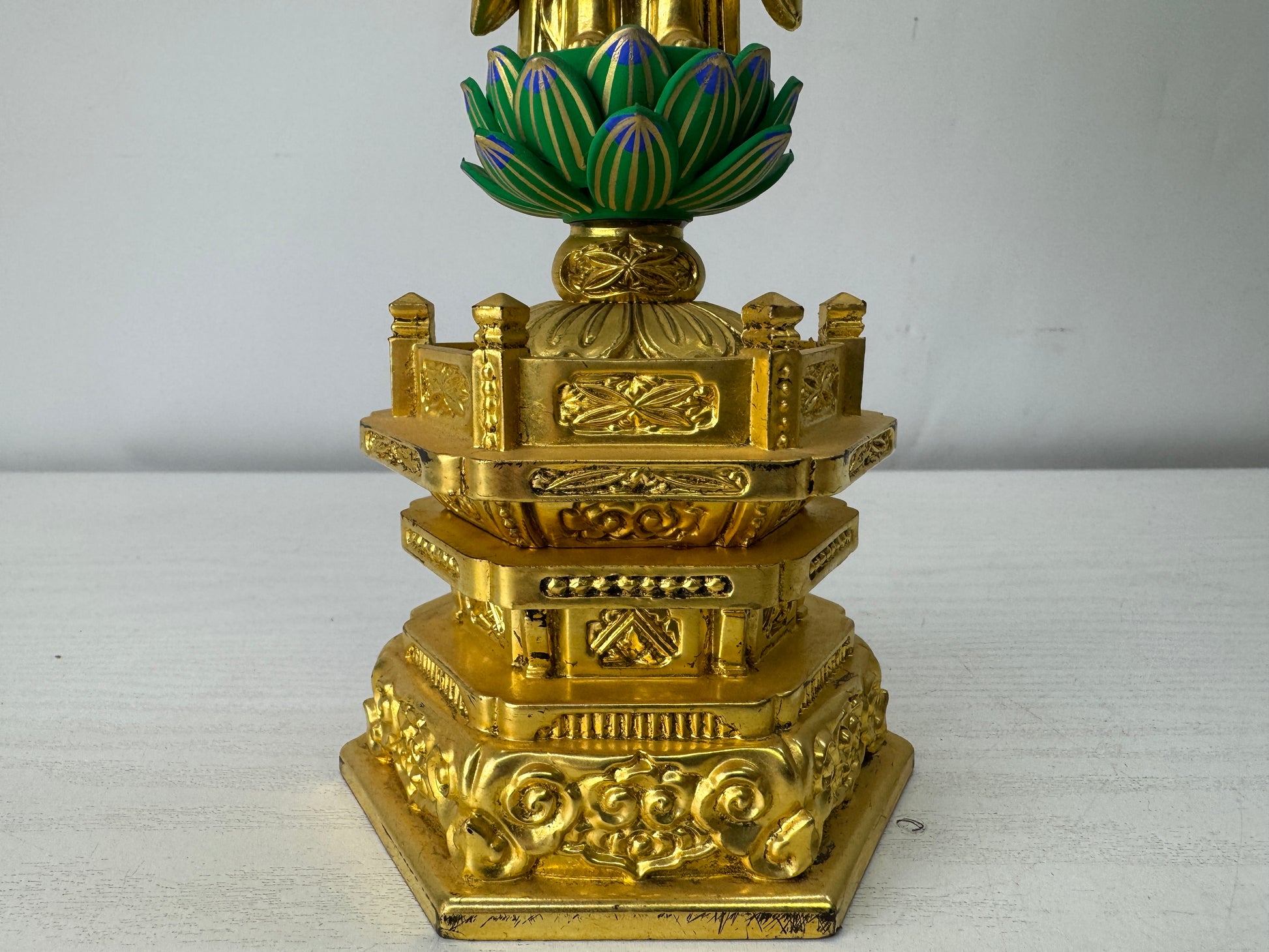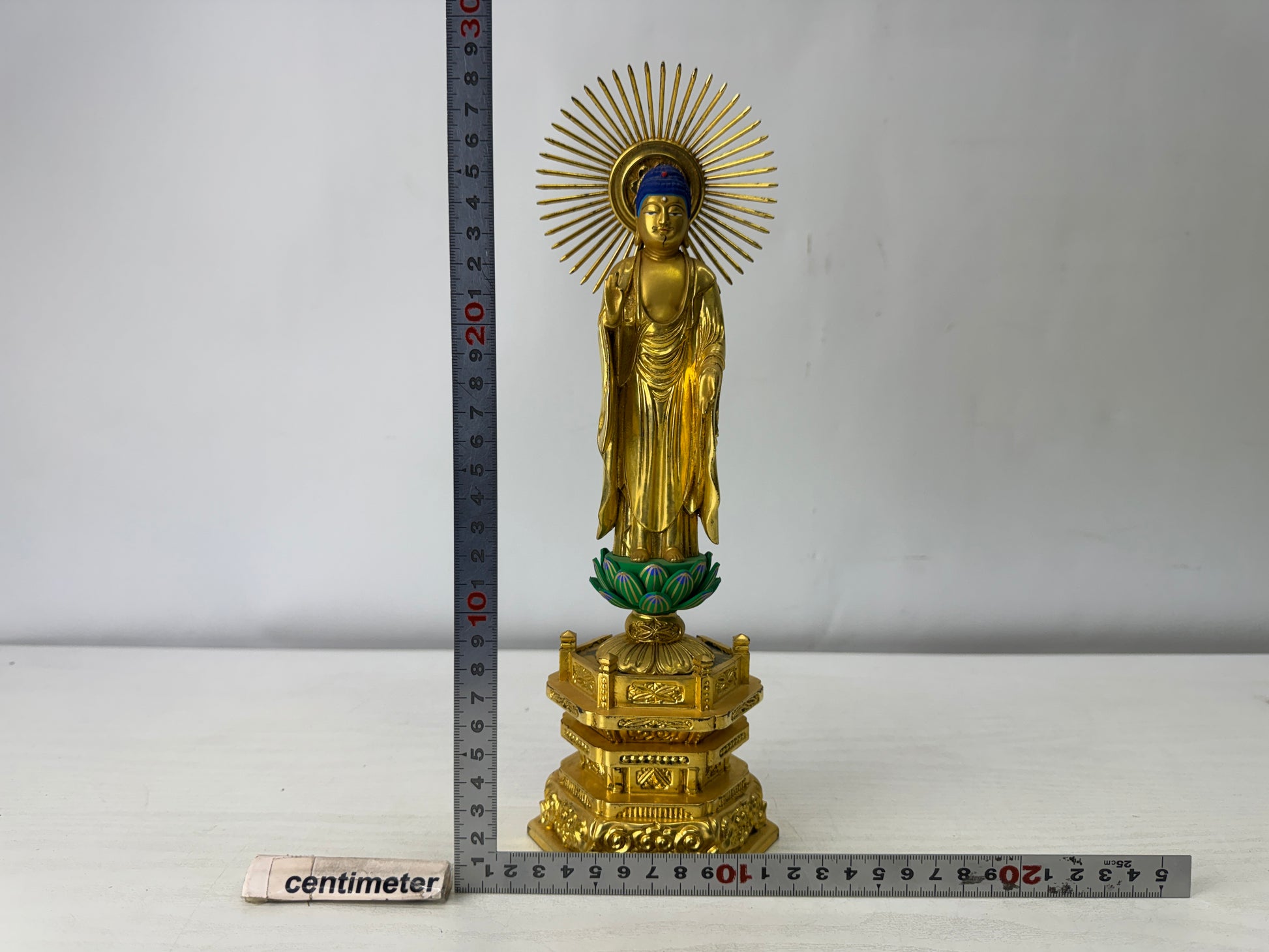Y10023 STATUE wood carving Amida Nyorai Buddha figurine Japan antique Buddhism