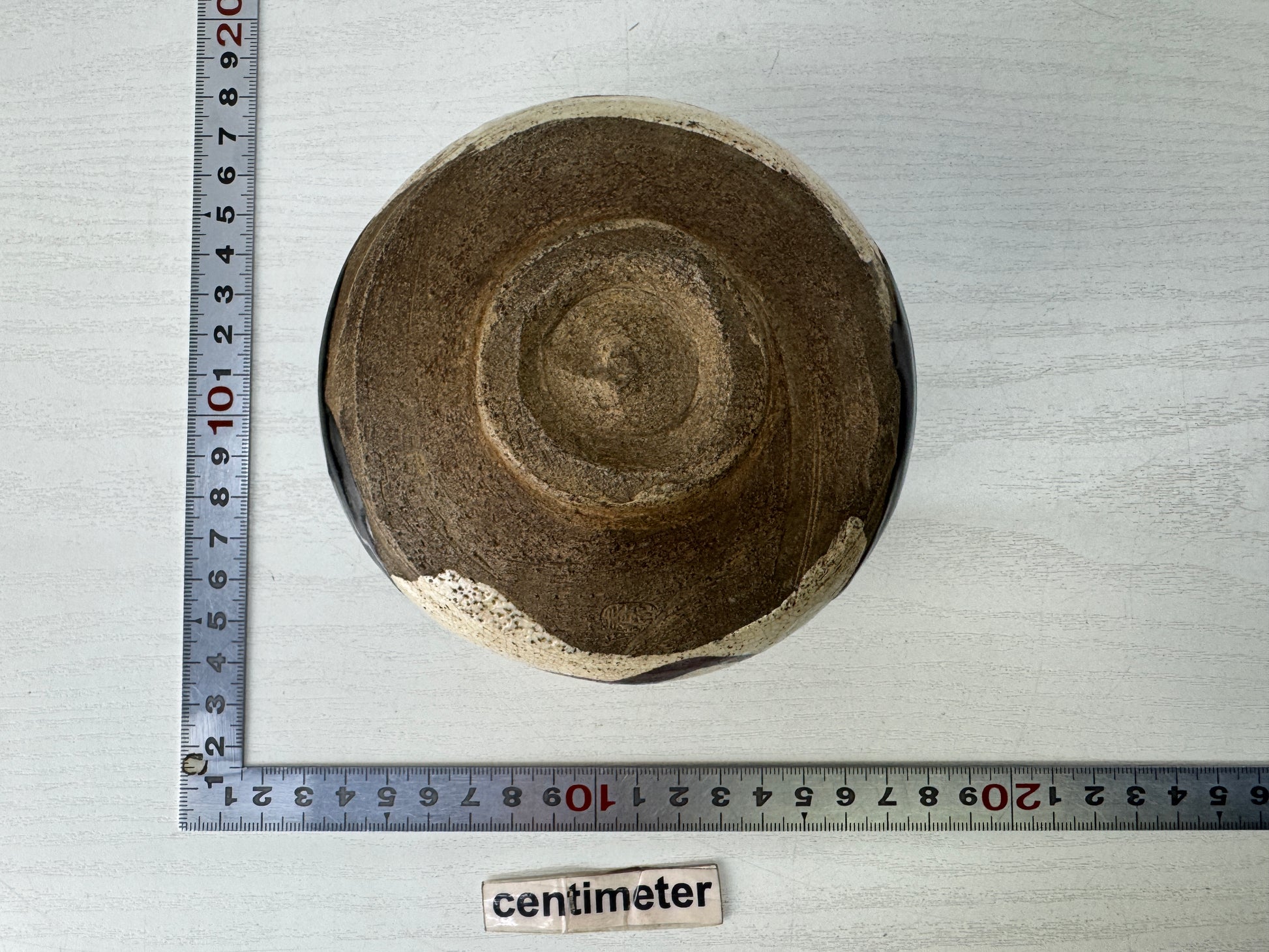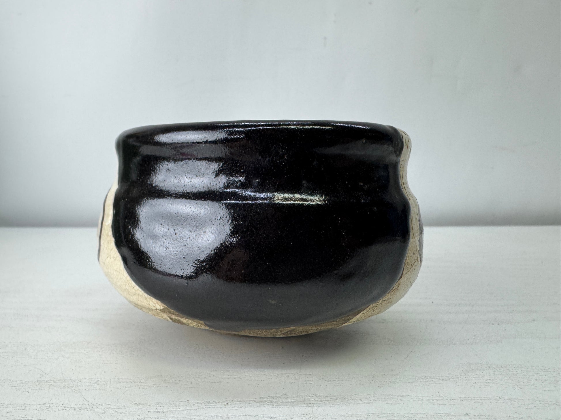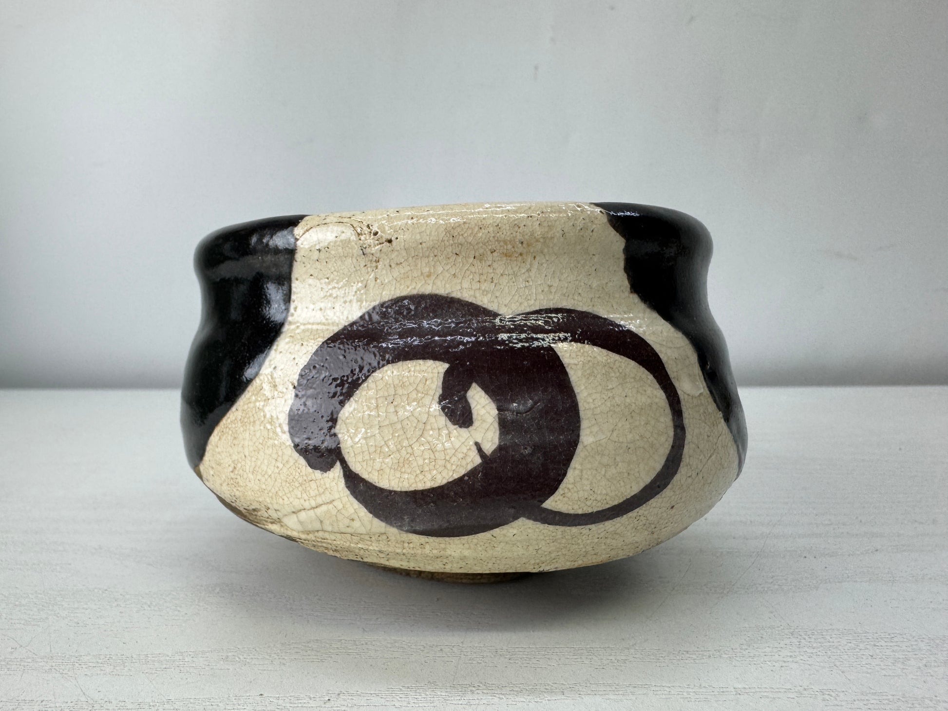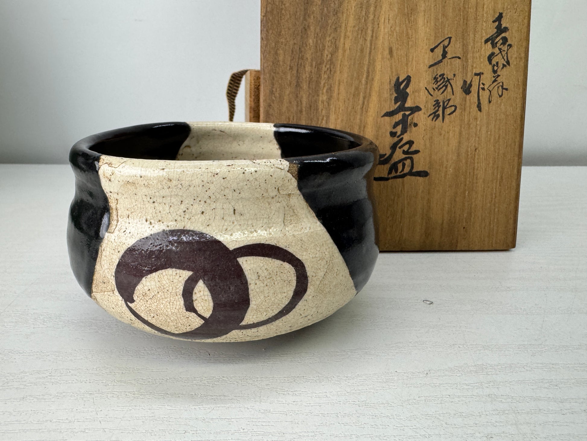Y10032 CHAWAN Kuro-Oribe bowl signed box Japan antique tea ceremony pottery cup