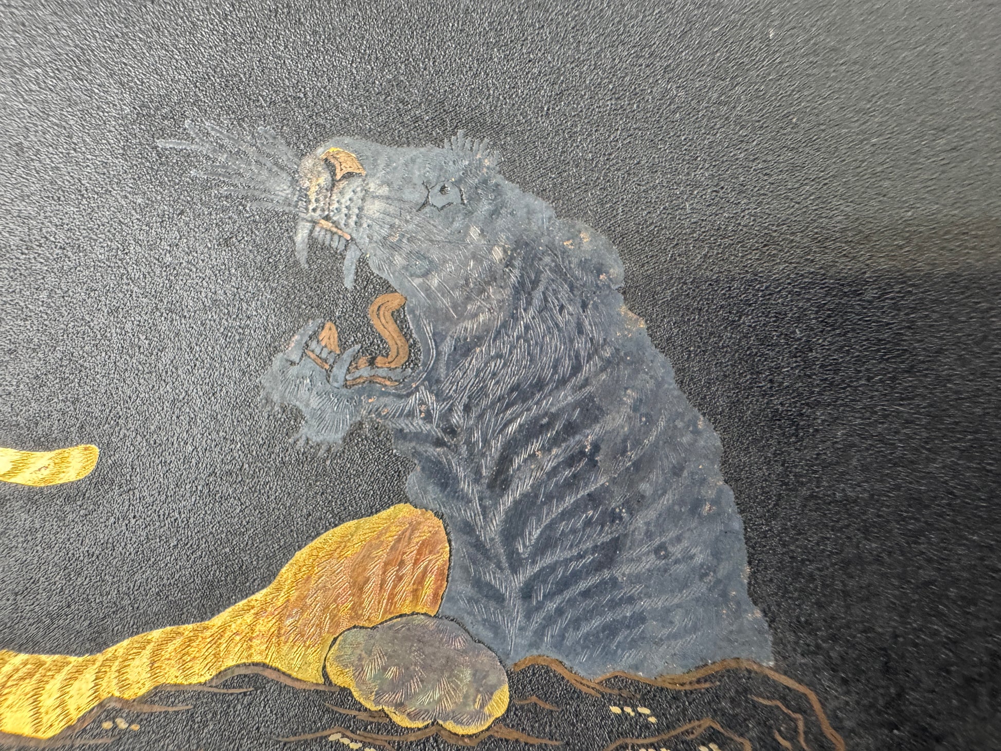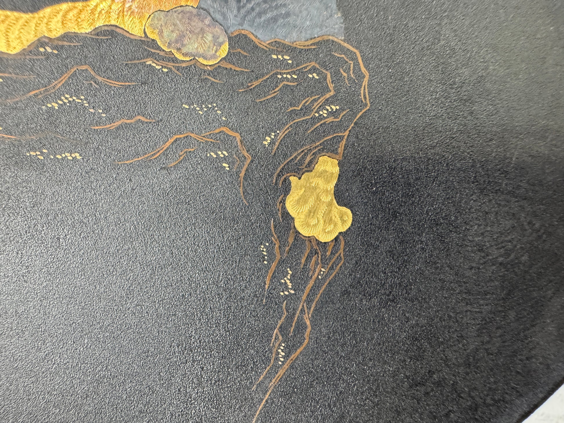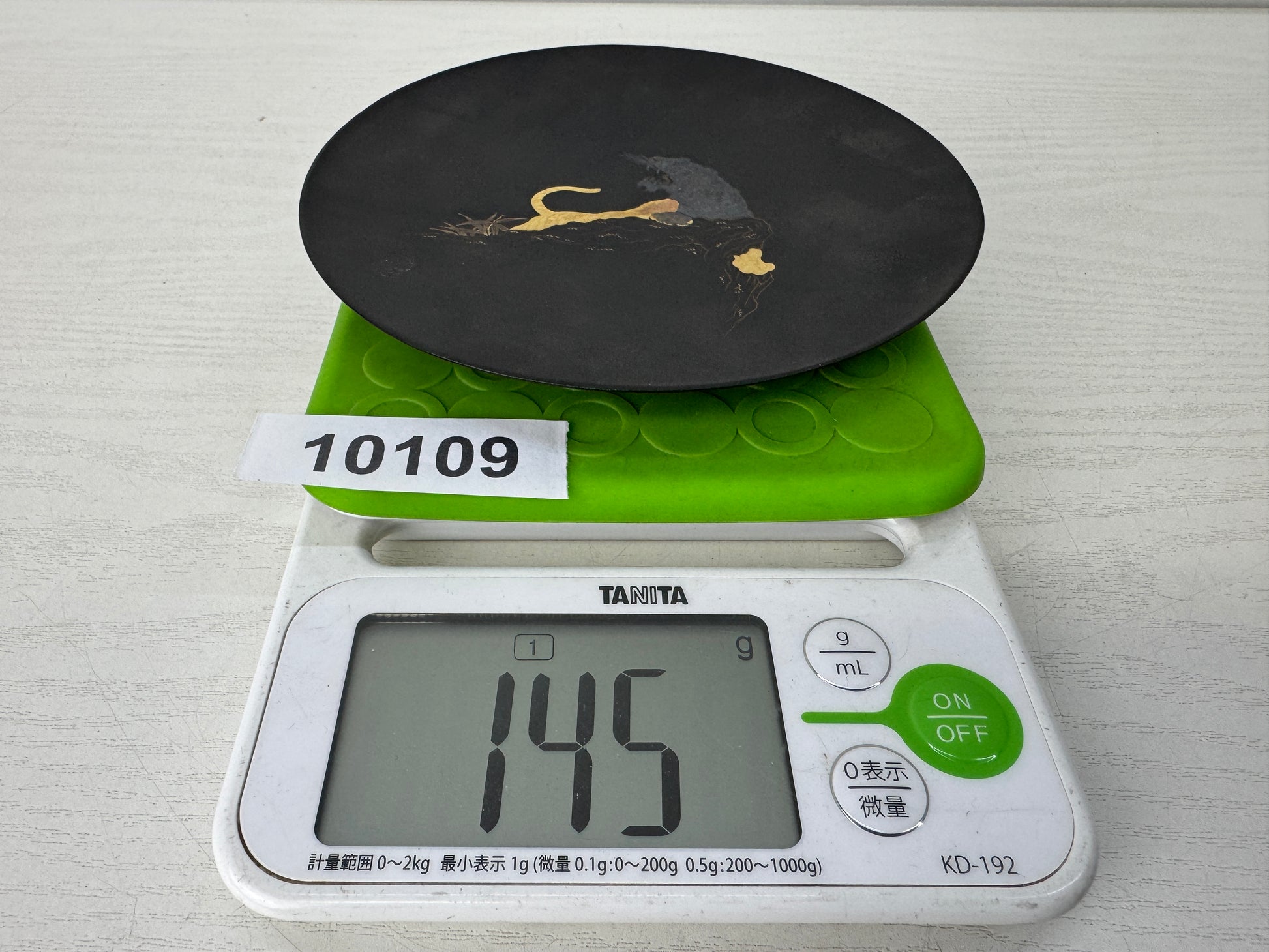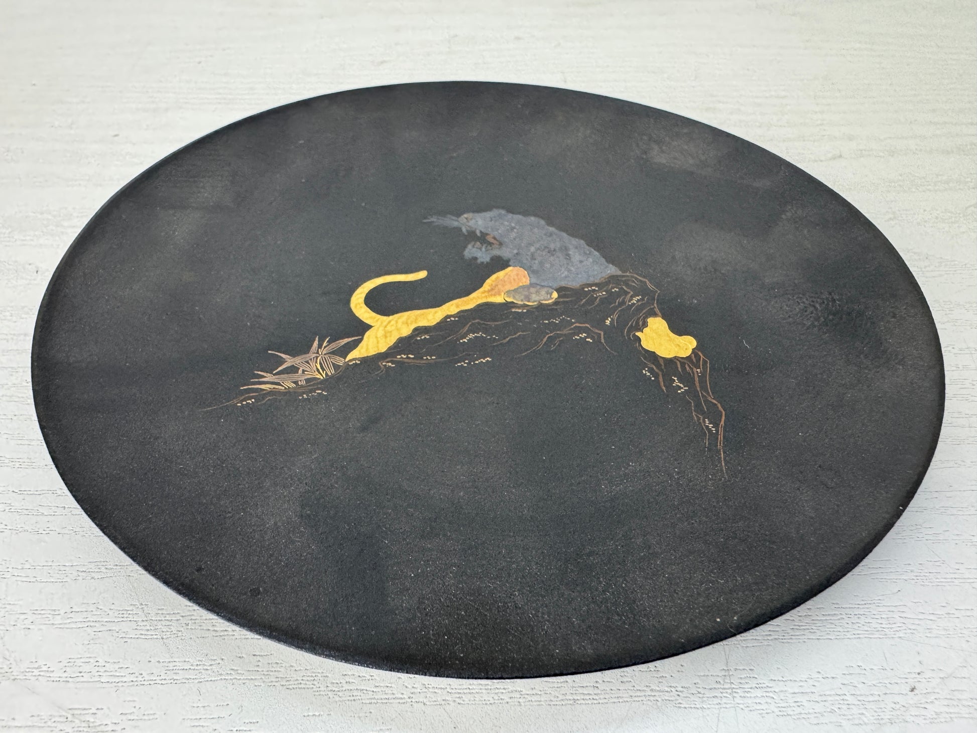 Y10109 DISH Tiger gold silver inlay Decorative plate metal Japan antique decor