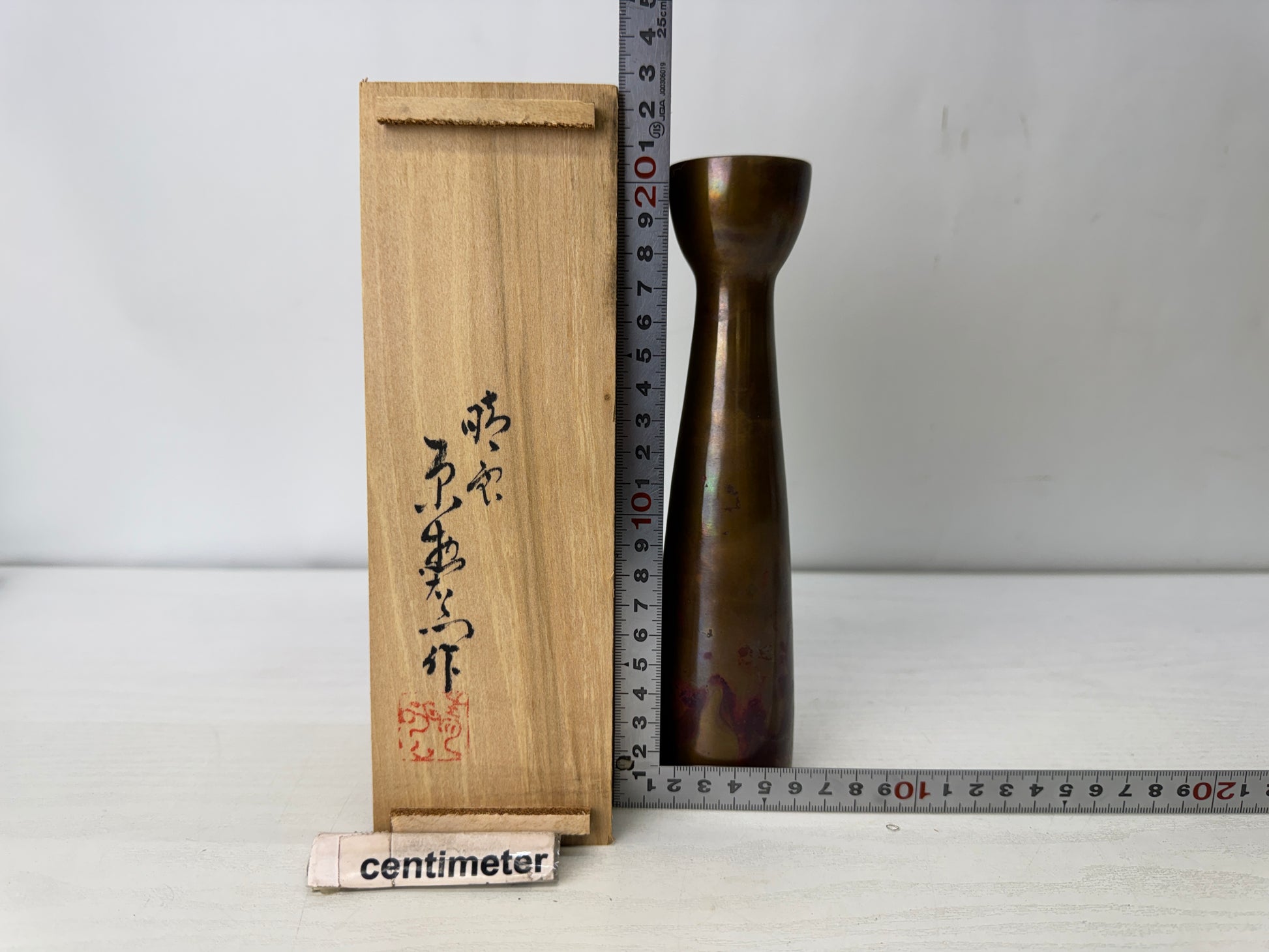 Y10120 FLOWER VASE Murashido signed box Japan antique ikebana floral arrangement