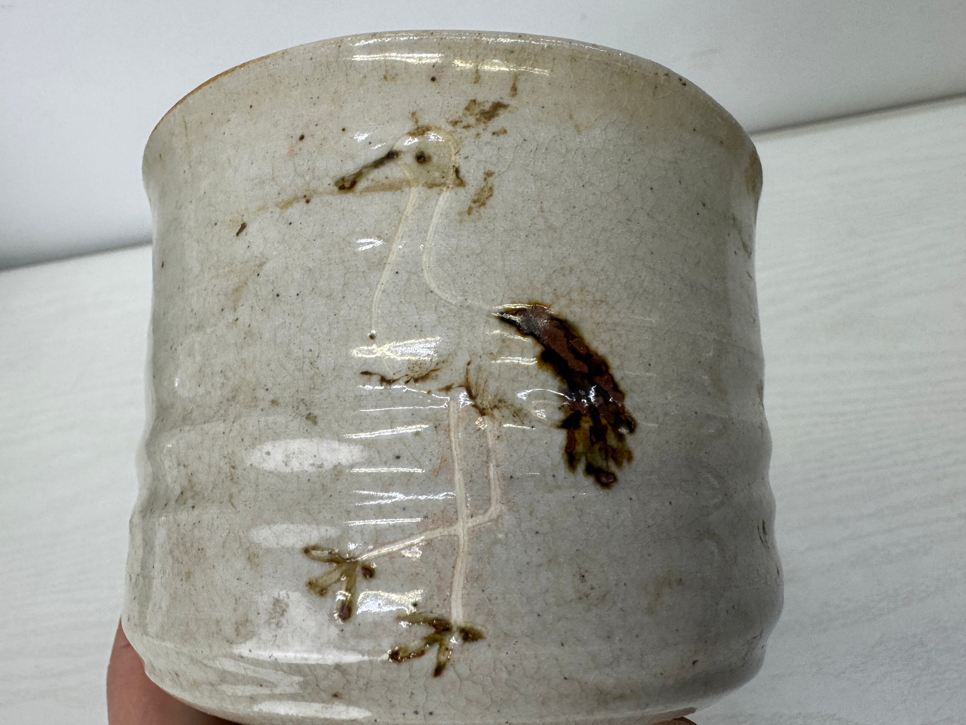 Y10121 CHAWAN Banko-ware bowl Crane signed box Japan antique tea ceremony cup