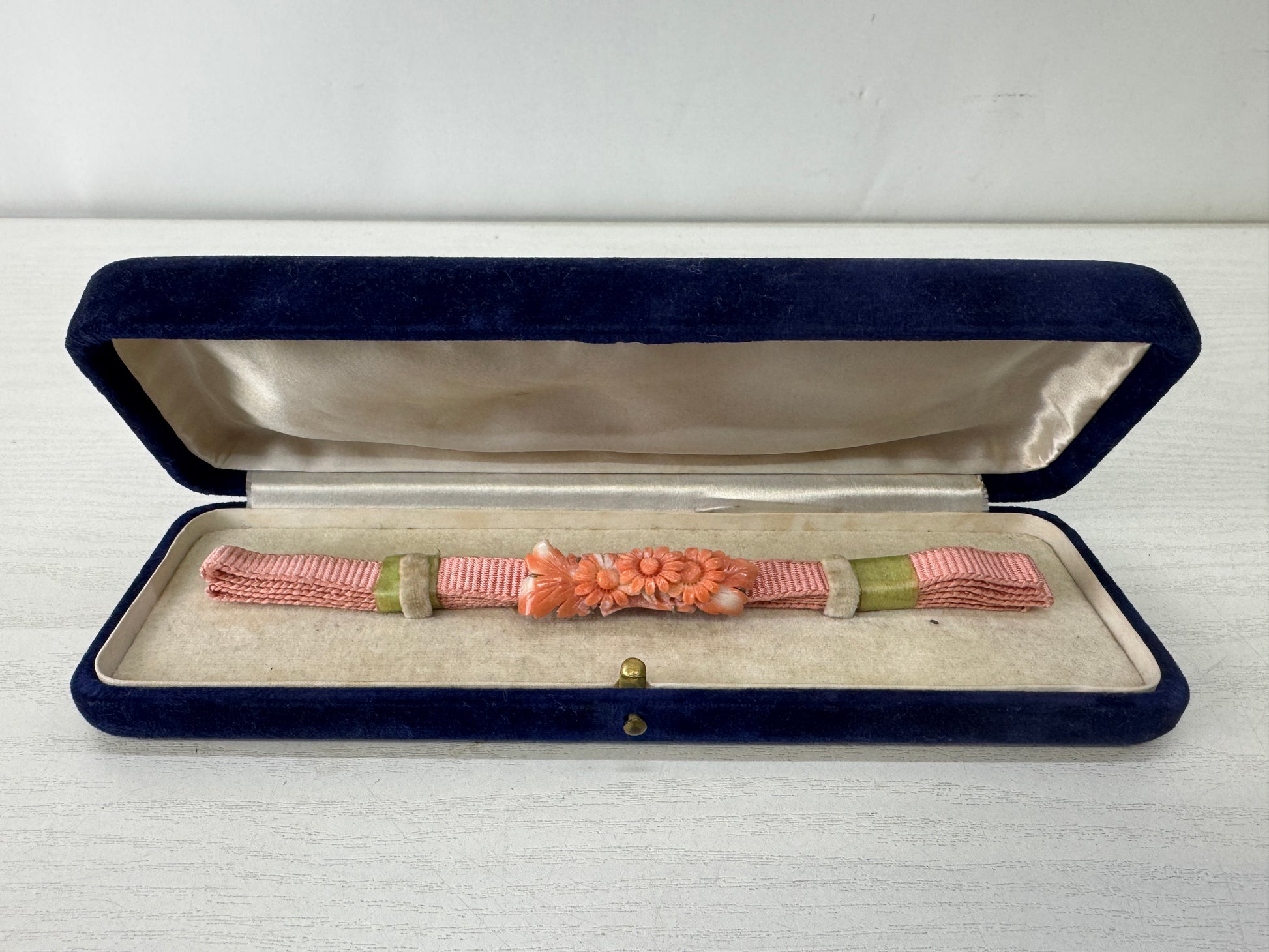 OBIDOME Sash clip brooch genuine coral carving box