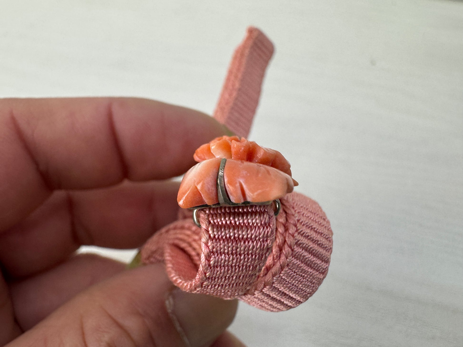 Y10130 OBIDOME Sash clip brooch genuine coral carving box Japan antique kimono