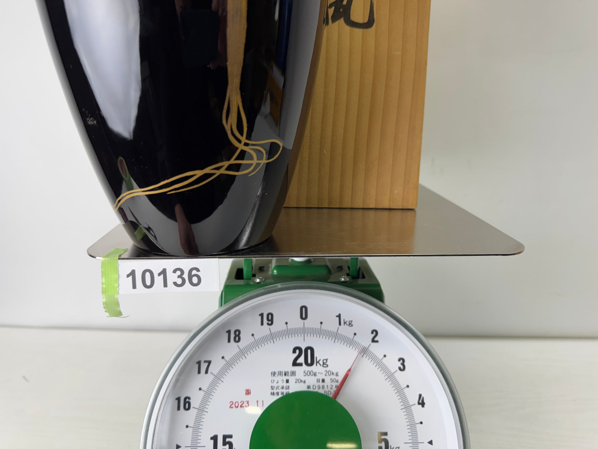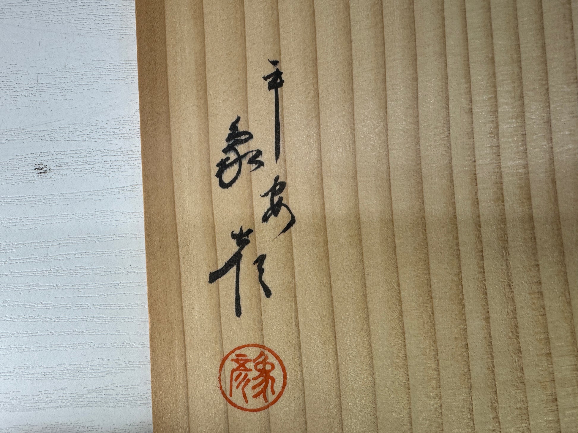 Y10136 FLOWER VASE Rooster Makie signed box Japan antique ikebana floral decor